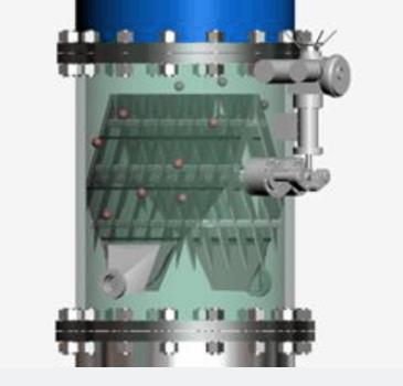 2打開位置:膠球不被裝球室內(nèi)部的漏斗阻擋分離,可以隨循環(huán)水一起通過裝球室。