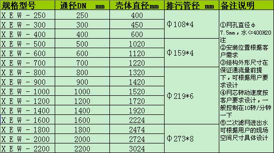 二、旋轉反沖洗強排污二次濾網(wǎng)定貨須知