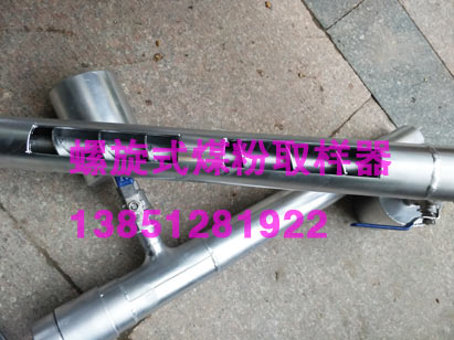 該螺旋式煤粉取樣器設(shè)計采用螺旋輸送原理,當煤粉沉落在取樣嘴中,利用外部的手柄或電動執(zhí)行機構(gòu)旋轉(zhuǎn)螺旋輸送裝置,煤粉將通過取樣管送到落粉管進入取樣瓶中。