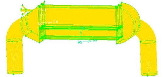 火電濕冷機(jī)組凝汽器結(jié)構(gòu)比較復(fù)雜,本文對凝汽器系統(tǒng)進(jìn)行簡化,利用Gambit軟件對其建立物理模型如圖1所示。