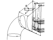 對凝汽器進(jìn)口水室內(nèi)流體流場進(jìn)行模擬時,設(shè)定在凝汽器進(jìn)口水室的進(jìn)水口處,面向管板方向?yàn)橹行拿�,為Z=0m截面,中心面右側(cè)為+Z方向,左側(cè)為-Z方向;連接凝汽器進(jìn)口水室和冷卻管管束區(qū)的管板在坐標(biāo)軸上的位置為X=0m。主要研究Z=1.0m(送球口的中心)、Z=1.2m(送球管的直徑為0.3m,)、Z=0.8。將幾個凝汽器冷卻管束區(qū)域設(shè)定為A、B、C、D、E、F等6個區(qū)域,如圖3所示。