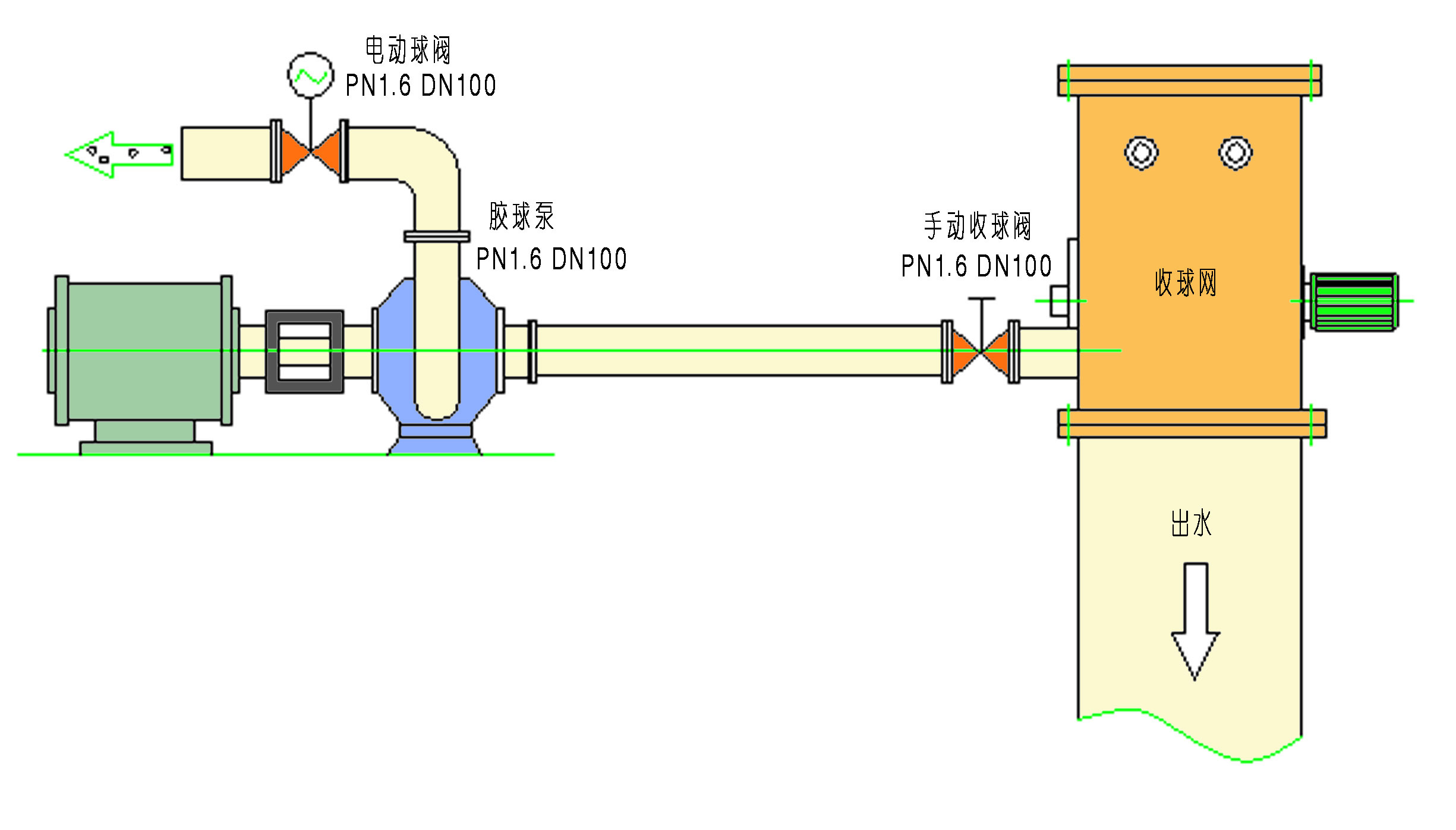 1、膠球泵與收球網(wǎng)收球管接口位置