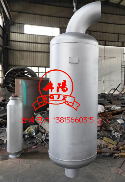 ②為增加廠房頂高空抗風的能力,消聲器本體采用支撐式支座,為此,消聲器前的排汽管應有一段膨脹彎管以吸收熱脹,如原排汽管段垂直方向已裝有疏水盤,則膨脹彎管要免裝。