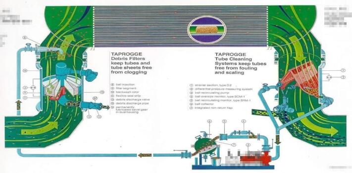 使用膠球清洗裝置系統(tǒng)可以有效消除水側結垢和水鍘水膜對冷凝管換熱效率的影響;海綿膠球連續(xù)運行——確保在微觀結垢生成的最初期就將其清除;既保證系統(tǒng)的熱交換效率連續(xù)保持在潔凈狀態(tài),又可避免不必要的膠球損耗與管理成本的上升;