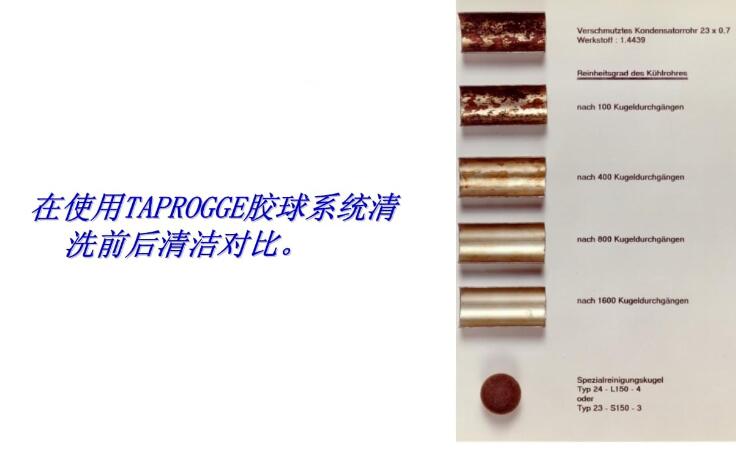 2、在使用海綿膠球系統(tǒng)清洗前后清潔對比;