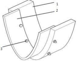 故經(jīng)過題攻關,發(fā)明了收球網(wǎng)與循環(huán)水管道間的一種新型密封結(jié)構(gòu),如圖6所示。圖6中1號部件為剛性材料、2號部件為柔性材料,其通過部件3(螺栓)緊固;鋼板和聚四氟乙烯材料的復合固定,既保證密封的強度、又保證密封的柔韌性,防止收球網(wǎng)在轉(zhuǎn)動過程中的卡澀。